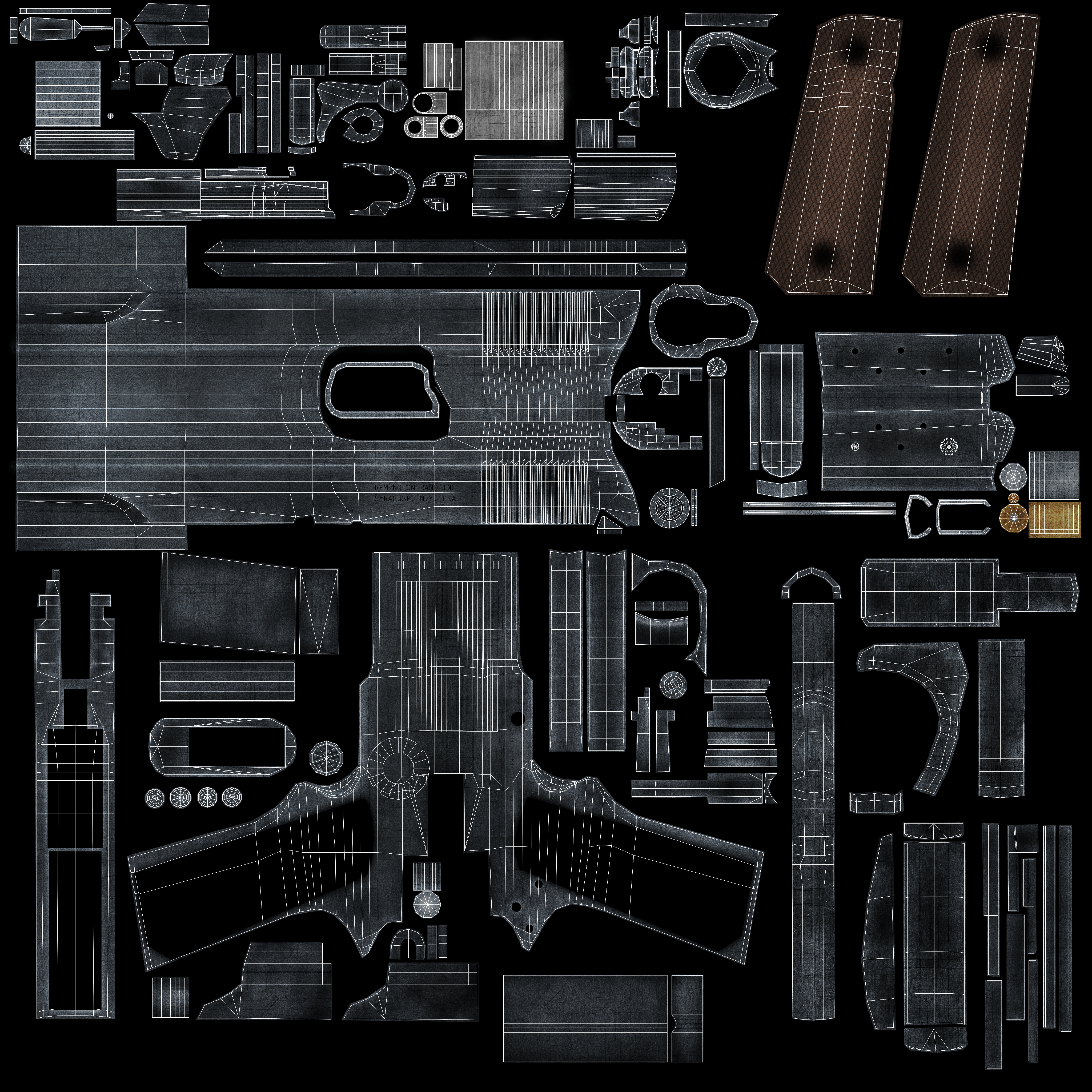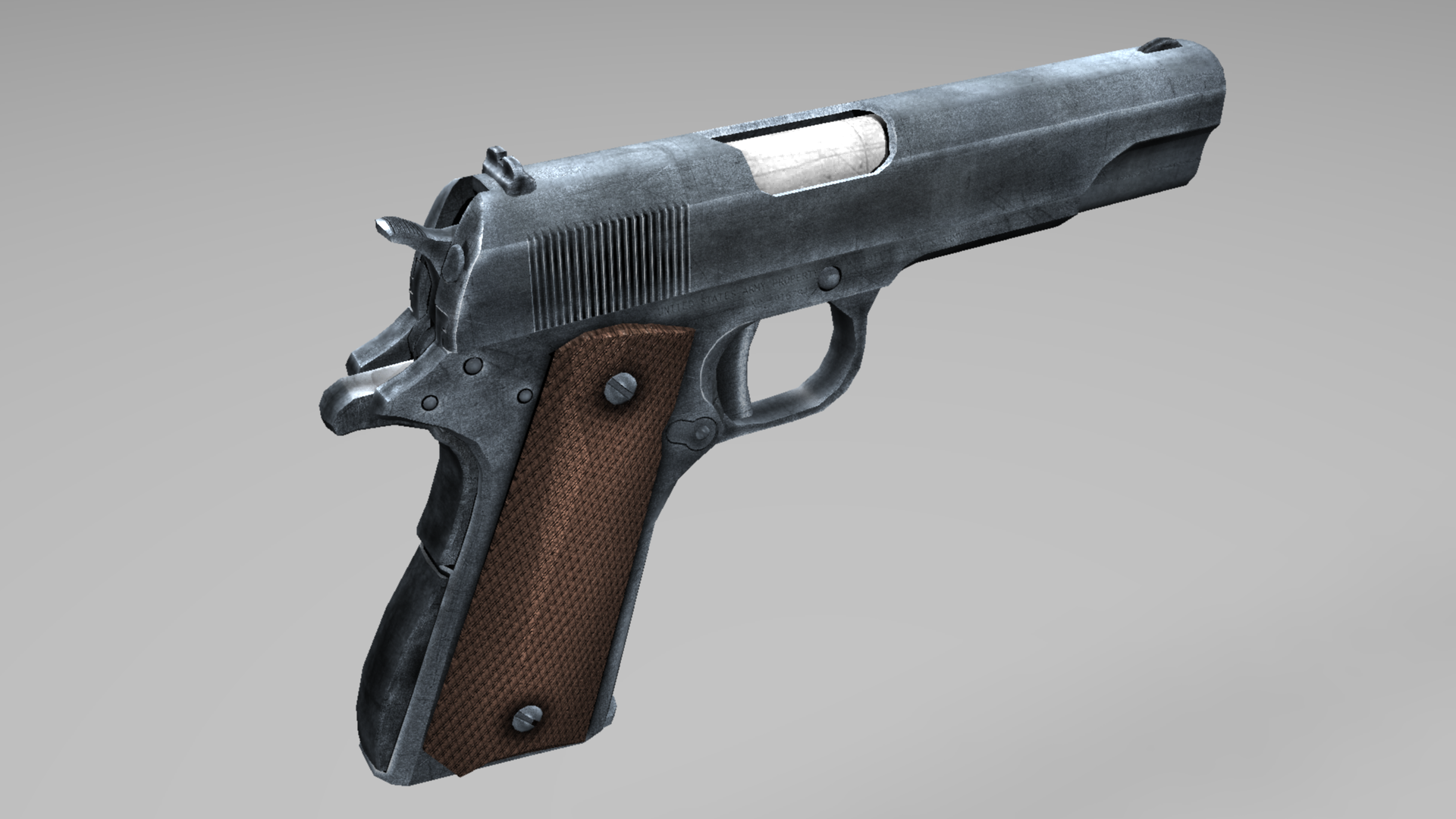 Colt1911 WWII Era - Maya. 4,601 polygons. All textures are 4096x4096 PNGs, units are in centimeters.