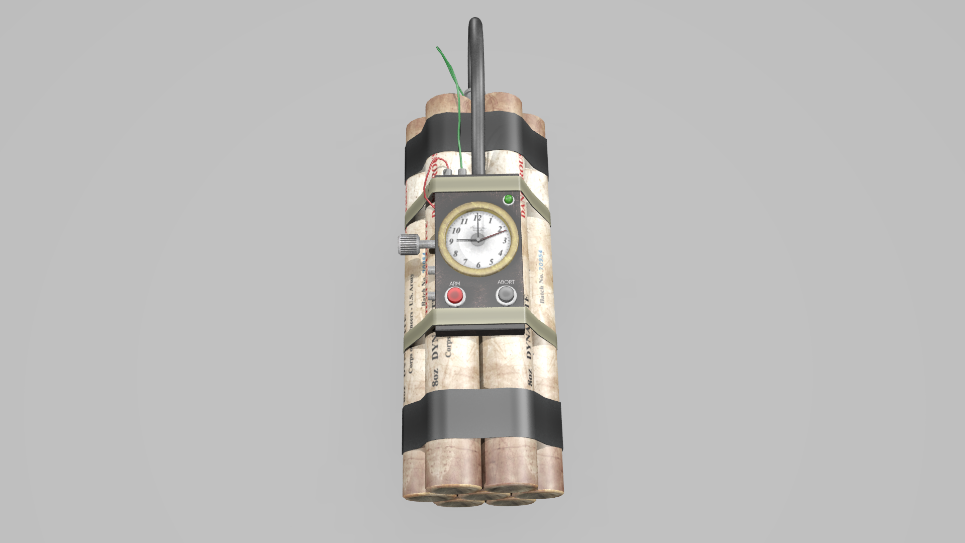 Dynamite Timed Bomb - WWII Era - Maya. 5,054 polygons. All textures are 4096x4096 PNGs, units are in centimeters.