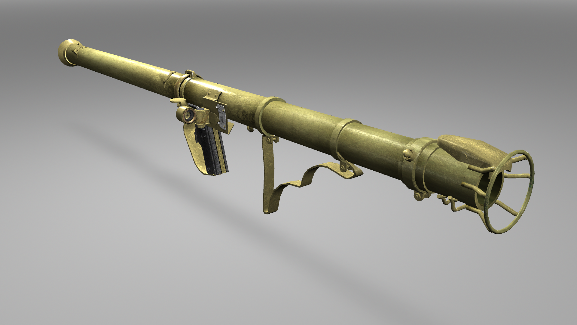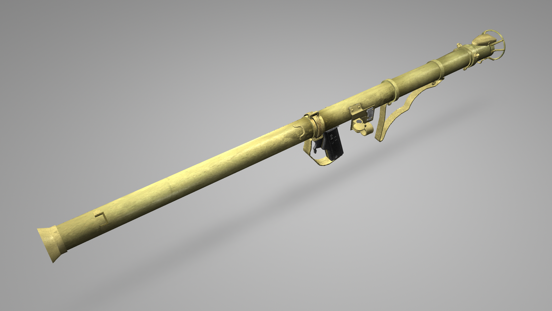 Bazooka WWII Era - Maya. 7,135 polygons. All textures are 4096x4096 PNGs, units are in centimeters.