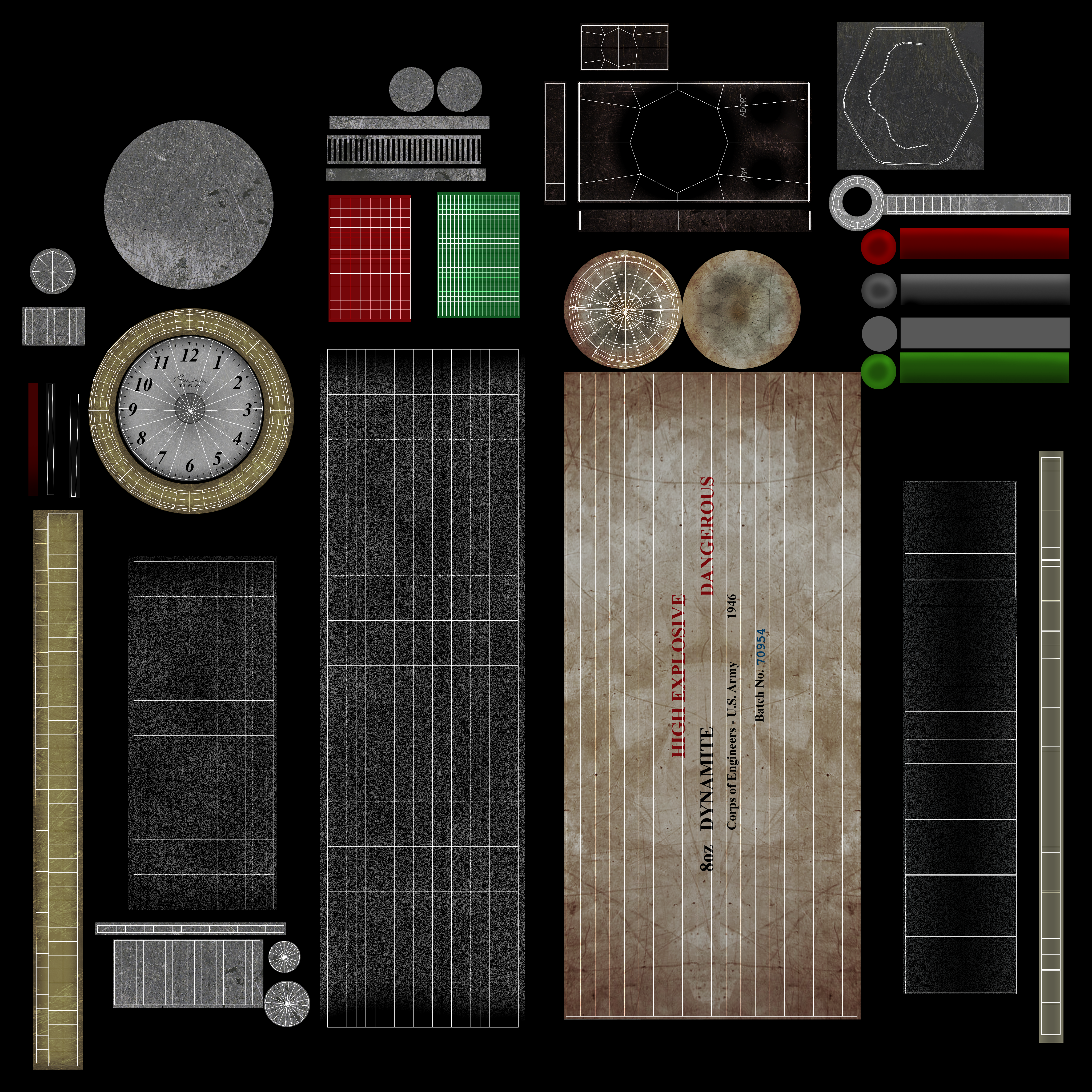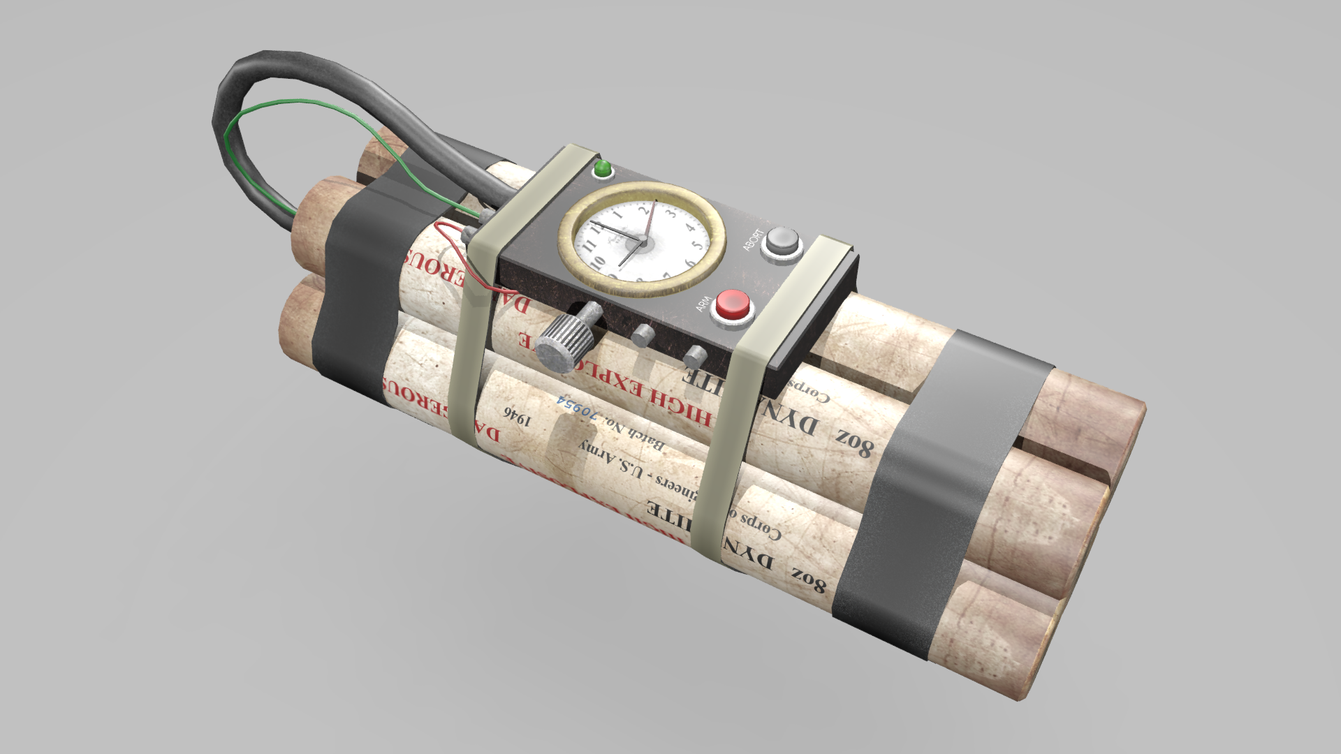 Dynamite Timed Bomb - WWII Era - Maya. 5,054 polygons. All textures are 4096x4096 PNGs, units are in centimeters.